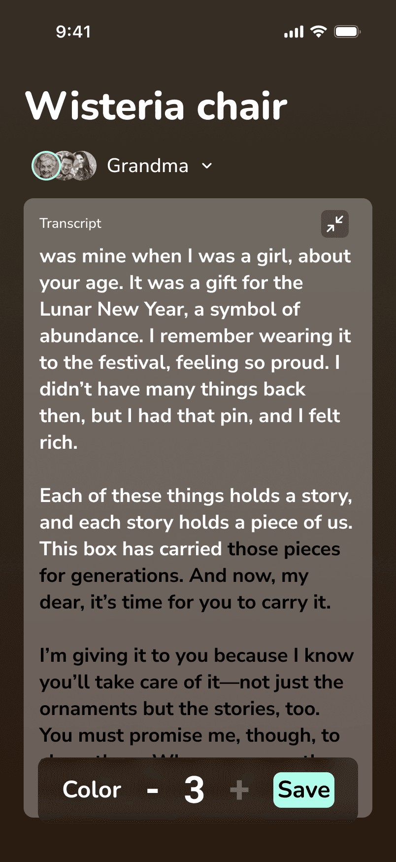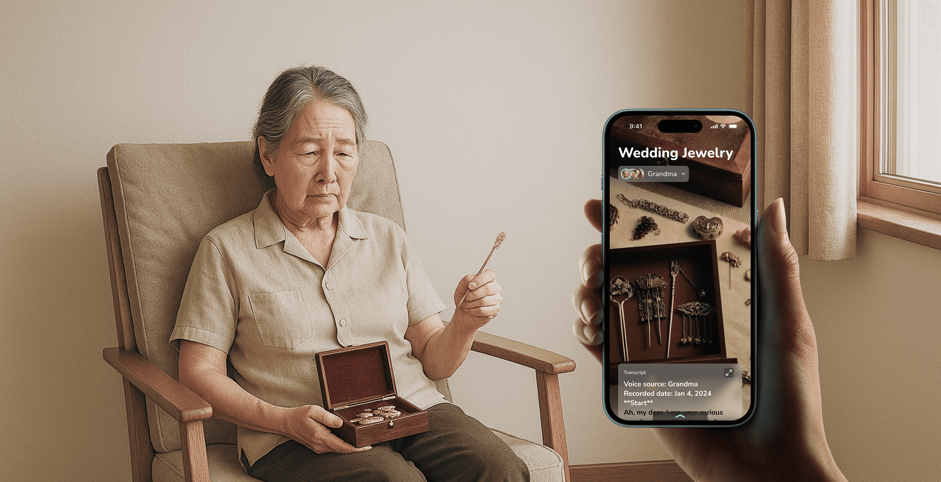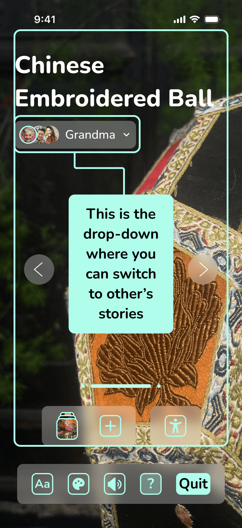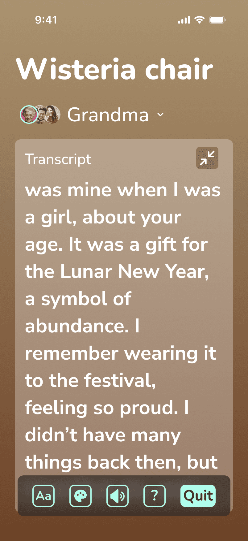 When I see an artifact, I naturally associate it with the story behind it; At the same time, stories with the voices of family members are more captivating than plain text. Therefore, we believe that storytelling with artifact-based cards and story listening should be used.