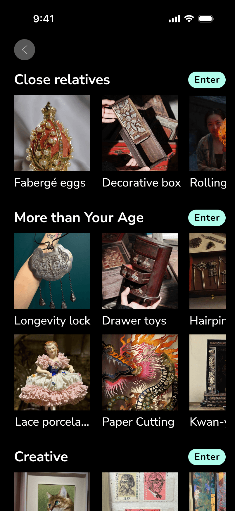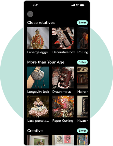 Appreciate different artworks uploaded by different family members in the Family Museum, while enjoying them, they can listen to their own stories about the family.